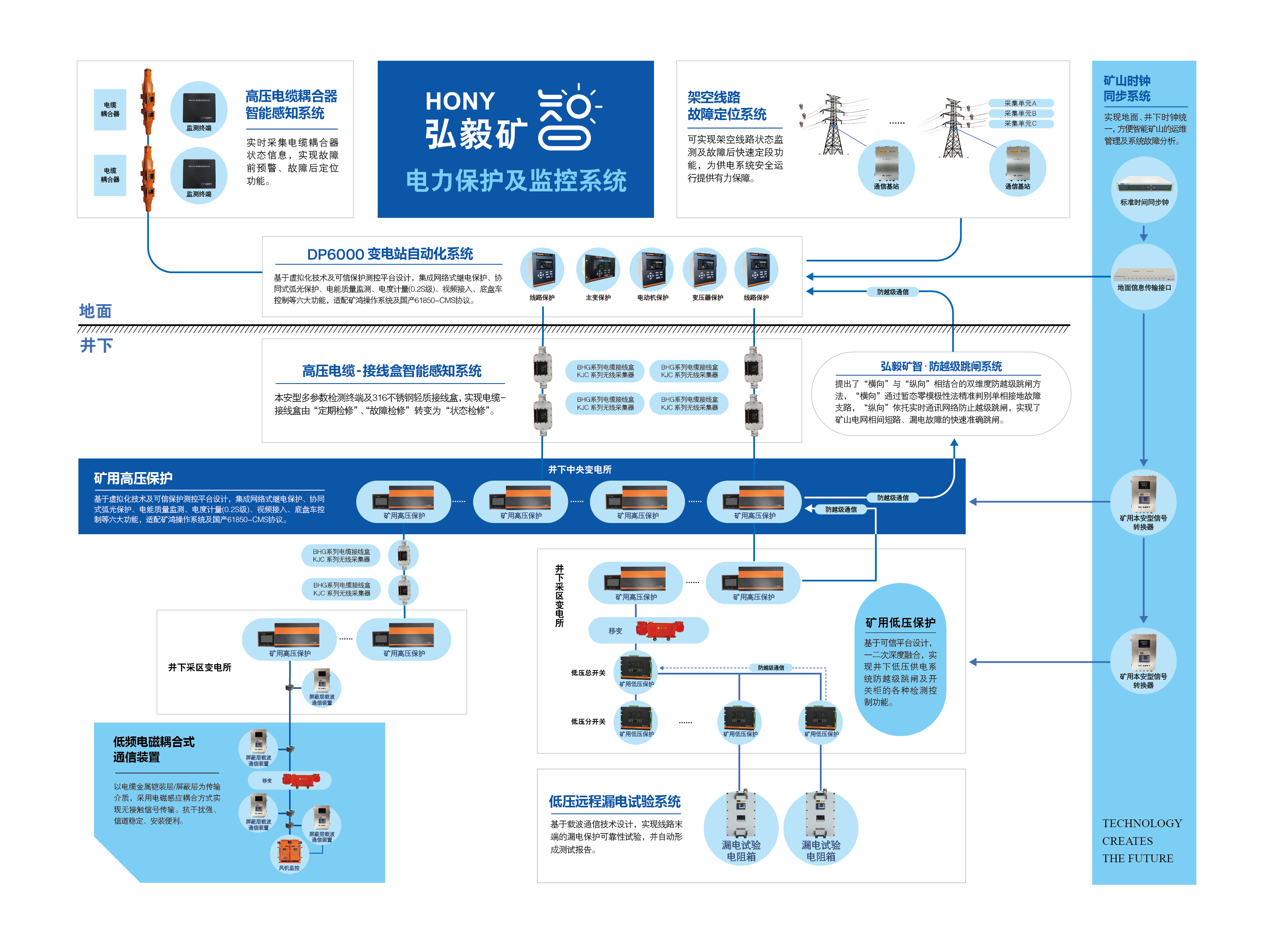 弘毅矿智・电力保护及监控系统全面覆盖矿山地面与井下核心供电场景,整合继电保护、电参数测量、实时监控、防越级跳闸及全周期运维管理等多元核心功能,构建起“监测—保护—管控—运维”一体化的供电安全保障体系。系统架构清晰,主要分为保护与监控两大核心功能模块;各模块下对应关联专属产品系列;形成功能互补、协同联动的产品矩阵;为矿山供电系统的稳定运行与智能化管理提供全方位技术支撑。